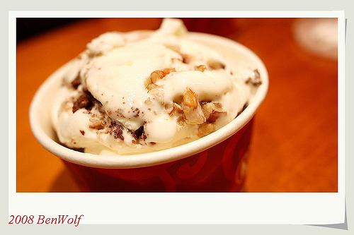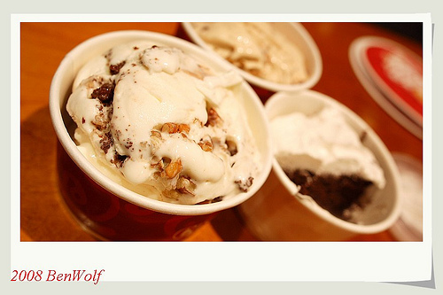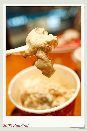 coldstone的冰品則因為額外加入富有嚼感的杏仁、焦糖醬等,