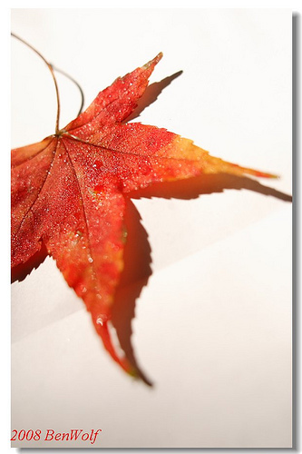 在據說是今年最強寒流來襲之前,走了一趟陽明山前山公園。 山上的陽光後雲層後透了出來,曬在身上頗是舒服, 根本不在會意明天的寒流會是幾度,我只管現在走得舒暢。 公園裡楓香斑黃的葉子在眾多綠樹中顯得醒目, 忍不住沿著步道向那顏色特殊的方向走去。 水泥地上,落著豔紅的樹葉, 沒帶相機只好把這幾片葉子給拎在手上請回來。 路上,只見另外一位同好, 握了滿手的秋意,走在我前頭。