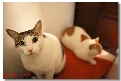 我拿起相機對著牠,牠也睜睜的盯著我,而相機的自動對焦點,