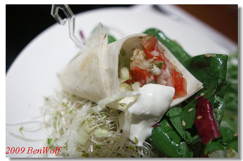 墨西哥捲餅加上酸奶酪以及Salsa醬,