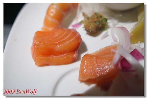 看似入口即化的鮭魚生魚片及鮭魚握壽司,