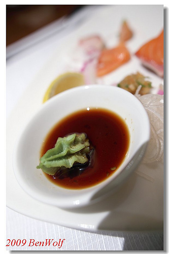 在這裡,連芥茉都已經用擠花器擠好了,只要自行加入醬油即可,