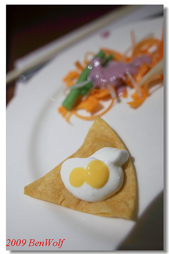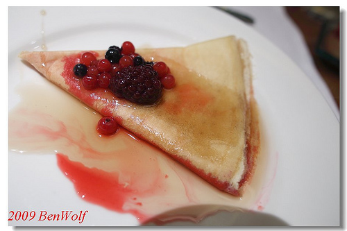 這是沙拉區裡取的薄餅,淋上sour cream再加上卡士達醬,