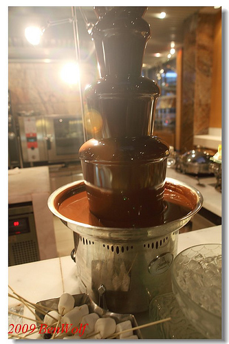 絲狀般流洩而下的巧克力噴泉,根本成了滑水道,簡直要勾引我的心跳下去,