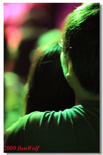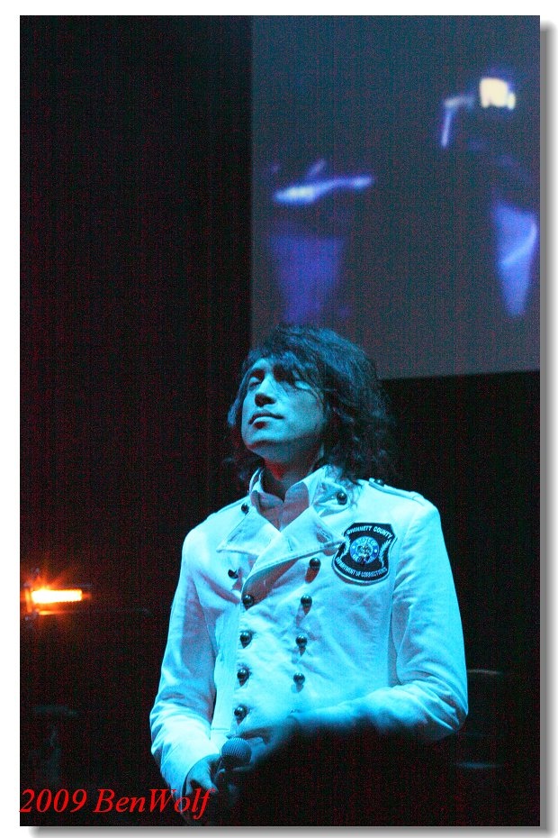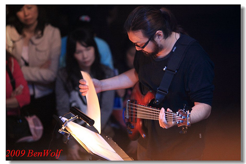 側臉的大俠。貝斯手的黑與大俠的白形成對比。本來一直在舞台左前方拍照的我,走到舞台右方,匆匆拍了張照片,怕是擋到後面其他坐著的聽眾。