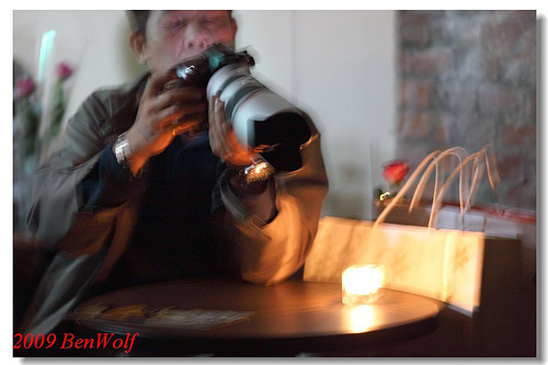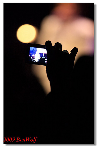 全程手持,這個不成問題,頂多手抖拍不出清楚的照片,怕是錯過好鏡頭。這位大哥坐著挺穩當的,要拍出像我這般有動感的照片不大容易吧。幸好演唱會裡歌手是固定位置,不會百米衝刺的快速移動。這時考驗著我對歌手動作的掌握程度了。