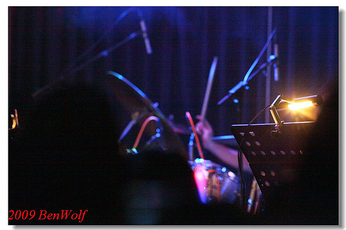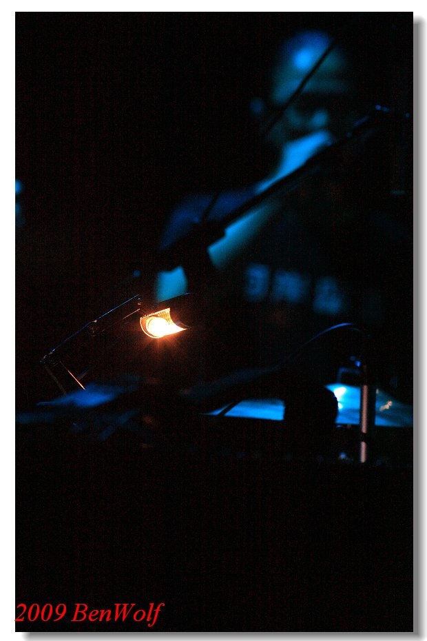 想要拍鼓手,不過被吉他手的光線給吸引了過去,相機的對焦系統終究是比不過人眼。寒色系與暖色系形成強烈對比,那一點點的昏黃,彷彿可以點亮一切呢!