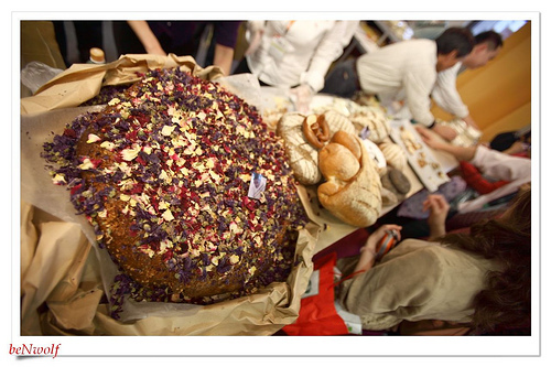 看到這灑滿玫瑰花瓣的漂亮麵包,我還是乖乖去排隊領麵包了~ ^^"
