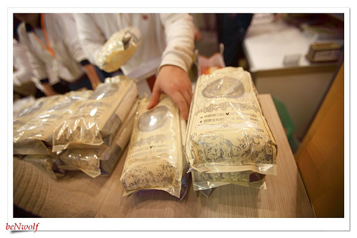 現場製作的麵包大放送,我是只拍照,不搶食,逆向拍了張照片,不過,