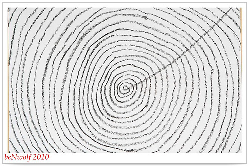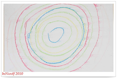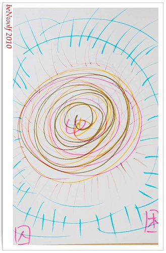 繞圈。倒數第二場團體的創作。稍微有了統整的感覺,全部是圓圈,沒有橫衝直撞的線條,有的只是順著同一方向的圈。