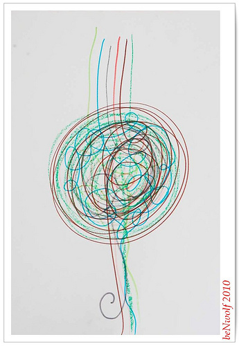 流過。刮擦的方式將簡單的線條給弄糊了,刻意保持距離的線條也因此而有了交流,不再是獨立的圈。人參呀~