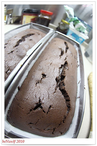 「剛把兩模巧克力蛋糕放進烤箱,把廚房收拾乾淨,也洗完澡。下午嘗到同事的雞蛋布丁,便想要做個蛋糕回報,在醫院時母親提到明天是阿公祭日,他喜歡蛋糕,就這樣,全都用蛋糕來應付~」