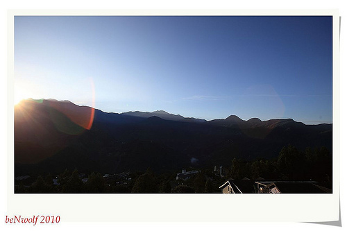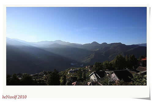環境影響人的心境於無形,仁者樂山,智者樂水,我既不仁也不智,純粹只是欣賞這大開大闔的山景,在台北灰暗到不行的城市裡,儘管生活方便,卻是讓人的肩頭越來越重,眉頭越來越緊,不曉得用生命換來的方便,到底有沒有生活著呢?看著遠方的山巒與一片藍天,整個人的心境真的變得不一樣,總覺得自己何必為了塵巿裡的紛紛擾擾煩心呢。