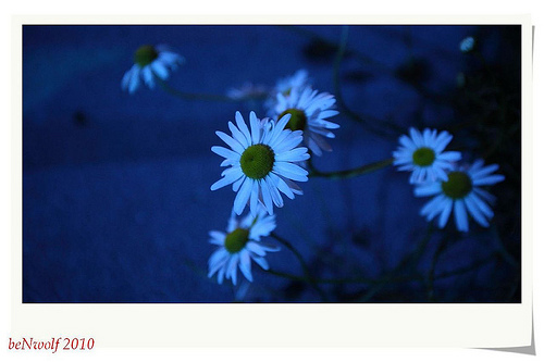 前往民宿時,路旁的波斯菊。水銀燈使照片偏藍,也好。
