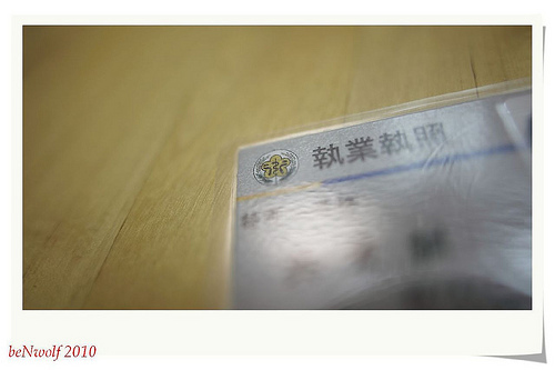 為了這張薄薄的護貝紙,從開始準備到今天,雖不至於十年寒窗苦讀,至少是有兩年是當個夜晚出沒捷運站的小地鼠,然後過了一年沒收入的日子,到最後通過資格考,不曉得多了幾根白頭髮,花了不知多少的心力與精神,終於我也有這一天。