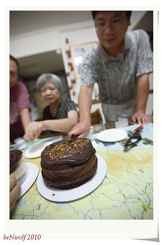 老媽動手拿出一盒蛋糕,神情非常興奮。這不完全是一個月之內開了兩次蛋糕,而是一家三代,一家子全部聚在一起享受這蛋糕,意義自是不比尋常。
