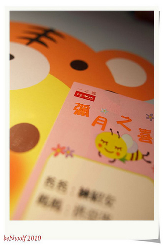 過沒幾天就收到練媽媽的e-mail通知,問我們哪裡領滿月禮盒方便,直到今天晚上,正在公車上的我接到店家電話,可以去取回禮盒。