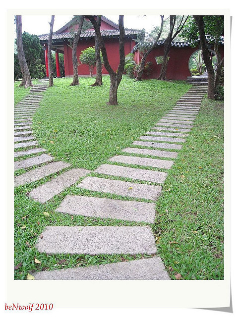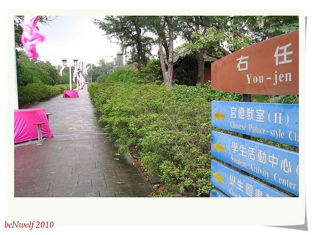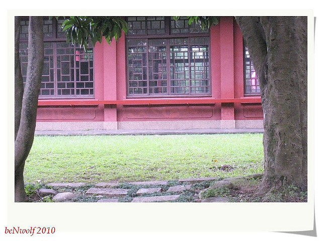 好漢坡的盡頭不再是排球場,而是不知何時蓋起的游泳池。轉進宮燈教室後方的小徑,向著牧羊草坪前進-盡頭的活動中心。