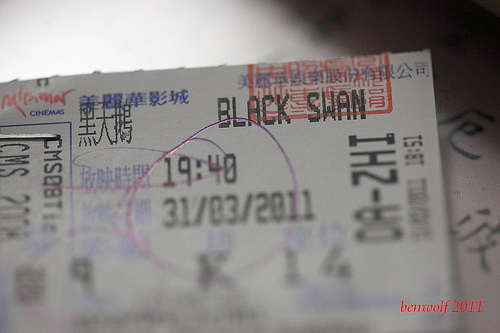 送走三月之前,決定來到美麗華走走,順便坐坐摩天輪,沒想到會遇到我的小天使! 小天使是電影海報的一部分,「愛神來了怎知道」,看來是個喜劇,或許,可以沖淡一點我的哀傷吧。 人不多的戲院,給我莫大的空間。 我在這裡,送走三月。黑天鵝。 我最喜歡其中的一句對白: 完美不是控制;完美還包括了放手。(大概是如此) 能收能放,隨心所欲,當做是給自己的期許。