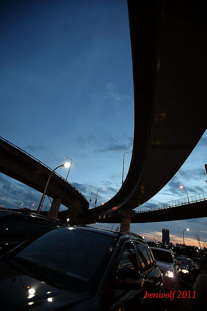 從大稻埕碼頭把機車給騎進去,一直找不到出口,最後是來到市民大道盡頭的水門,才有得出口。 等紅綠燈的同時,看看時間足夠,便取出書包相機袋裡的相機,盲拍了一張,又一張,再一張。 路的盡道,是忠孝橋,是淡水河,也是美景的開始。 可憐的都市人,何時才會有容易親近的河邊呢…