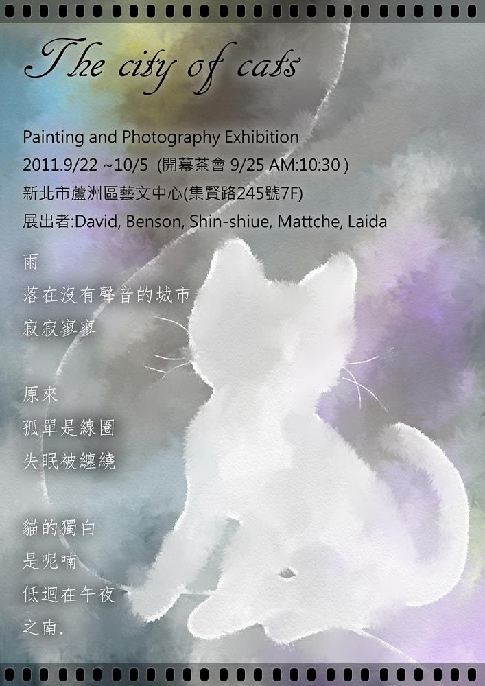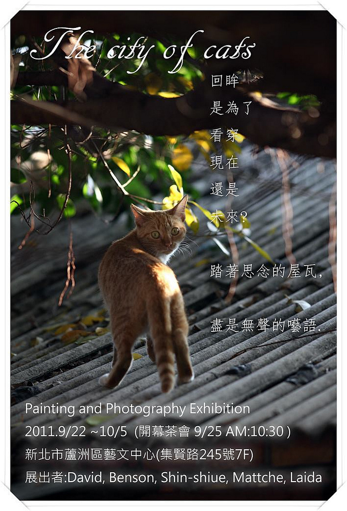 好友大衛設計的邀請卡第一版。 他設計的第二版,採用了我的照片,真是開心呀~ 日期:2011.9/22~10/5 茶會:9/25 10:30(我會準備手工蛋糕及餅乾,歡迎大家一起來嚐嚐) 地點:新北市蘆洲區藝文中心(蘆洲區集賢路245號7F) 歡迎各方朋友一來共襄盛舉,看看大衛的個展,以及我和其他三位的聯展~ ^^