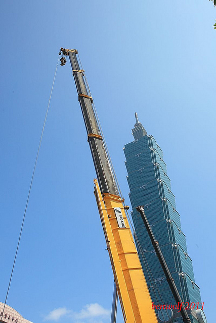 同樣不到一百公尺處,101大樓矗立,吊車正在作業著…