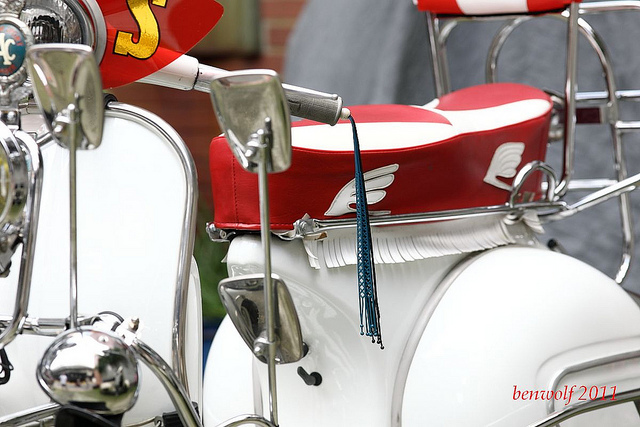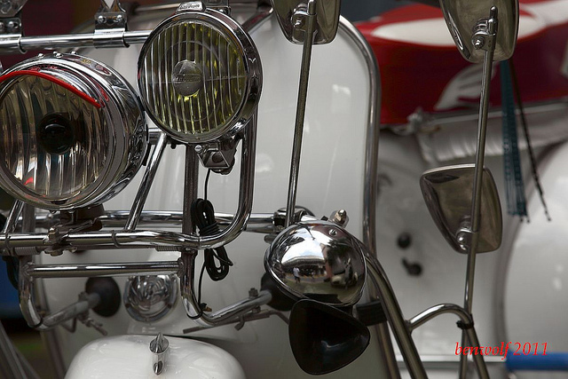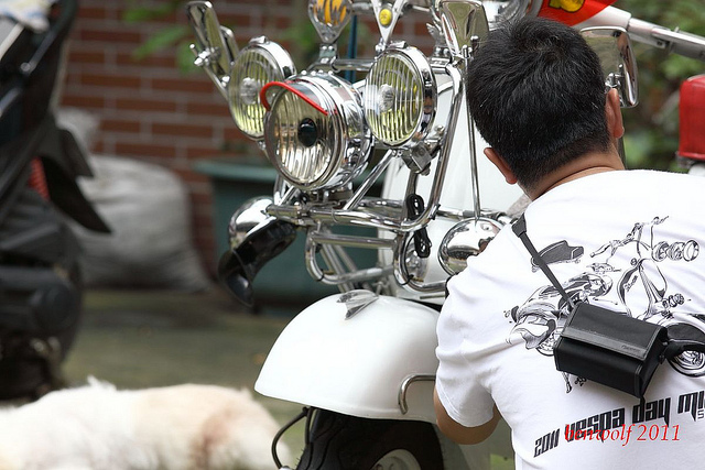 這是我見過最美麗、最妖嬌的Vespa。 趁著入冬以來難得的好天氣,我帶了相機,搭捷運來到民權西路站,開始進行我的計畫-走過台北橋。這是上橋前看到的漂亮車子,便問了車主,能否拍張照。 有愛車,真好!