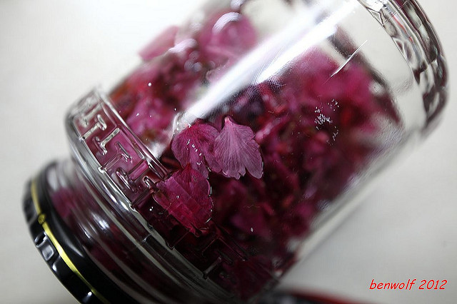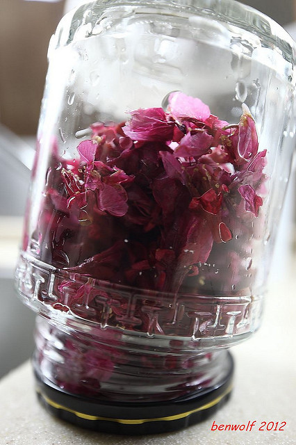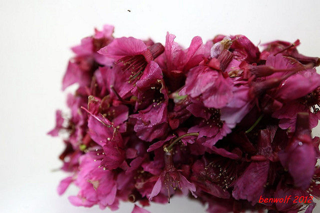 上網找了堆關於漬櫻花的方法,找到的幾乎都是用鹽,說日本進口的鹽漬櫻花要如何處理之類。再不然就是糖,糖漬櫻花也算可以。後來想到,玫瑰是花、桂花是花,如此炮製就可以比照辦理。