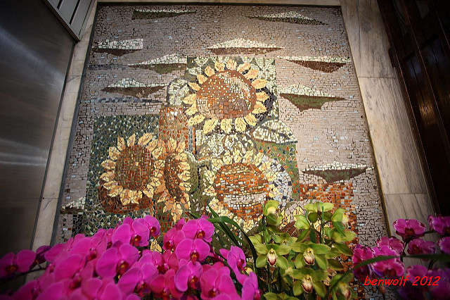 向日葵馬賽克。這是台中自由路上最有名的一幅作品,或者說,顏水龍的馬賽克成就了太陽堂的太陽餅吧…