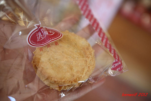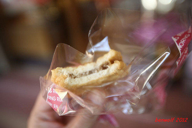 兩片餅乾中間夾了芋頭餡,再去油炸。不會太油膩,只是芋頭香被油炸後的餅乾給比下去了,可惜。