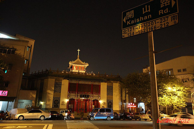 中華聖母主教座堂,開山路。位於路衝的這棟天主堂,怎麼看,怎麼像是圓山大飯店的設計師畫得圖似的,盡是雕梁畫棟的華麗。