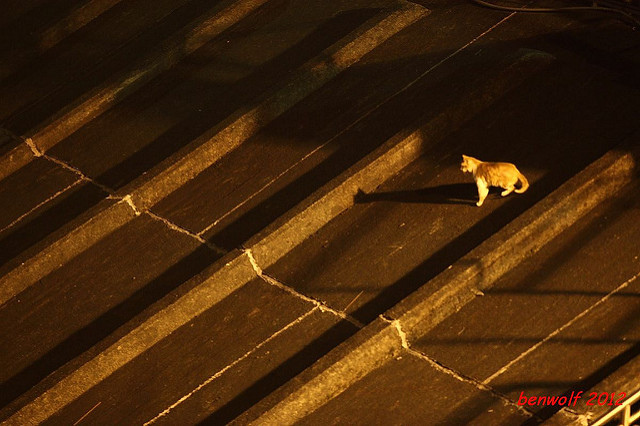 樓梯上的貓。