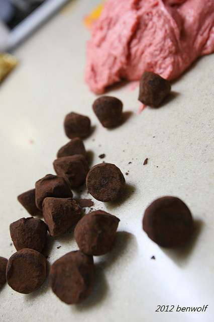 為了增加色彩對比,我選擇松露巧克力做為麵團的內餡。