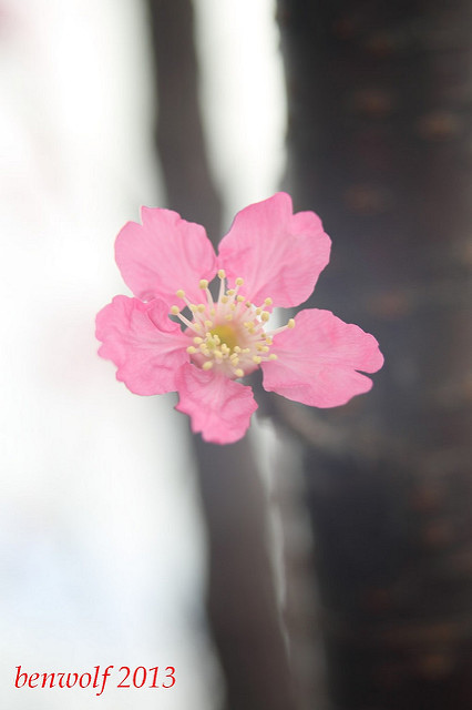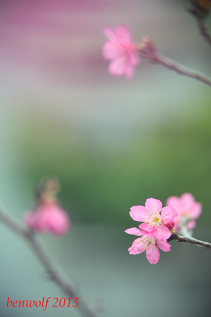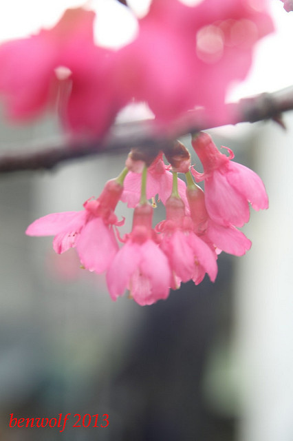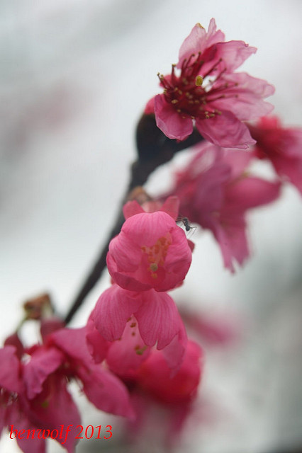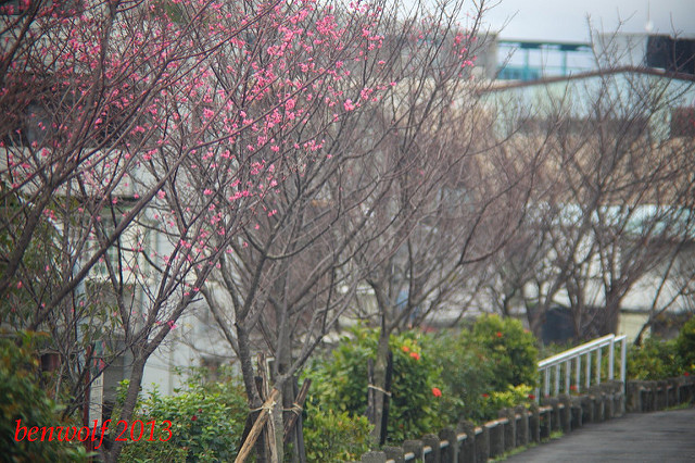 說是盛開,言重了;這幾株櫻花並沒有受到太好的照顧,開起花來也稀稀落落的,卻也夠拍照的了。