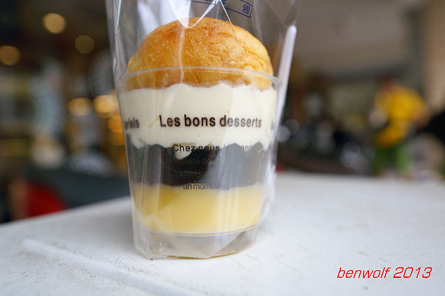 波羅麵包、卡士達醬、大珍珠、雞蛋布丁,層層的疊起這個小杯子。分開來看,這四種食材都很常見,併在一起卻是首見…重新組合的創新,真有趣!