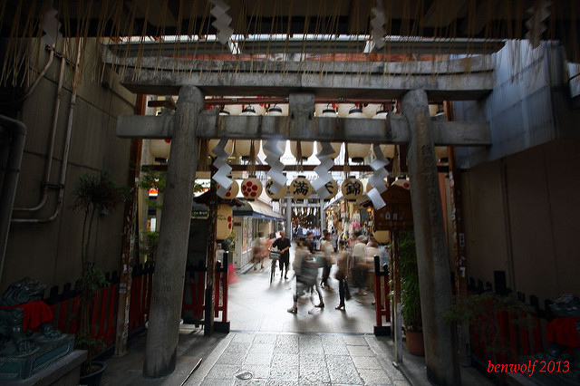 沒什麼人的神社入口。這是錦市場左近的新京極,人潮似乎把這神社給遺忘了。