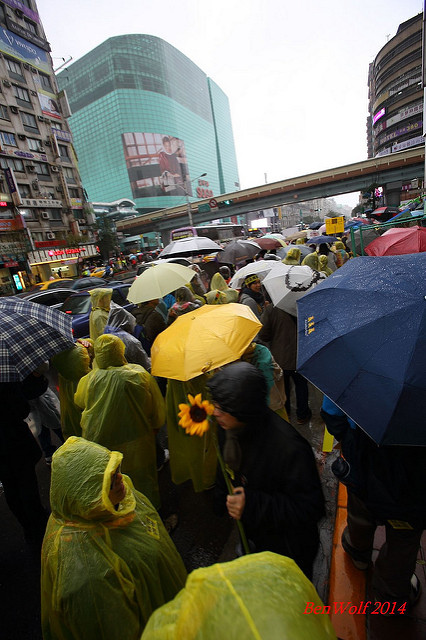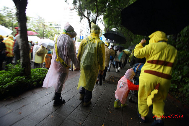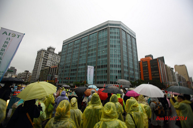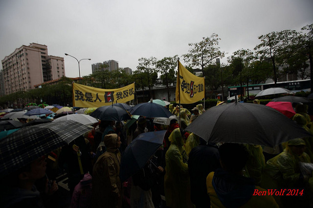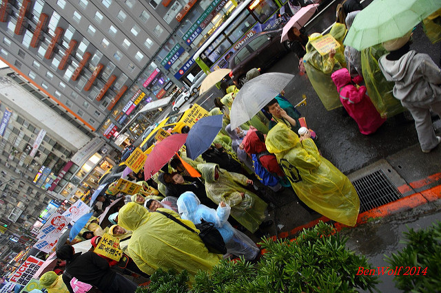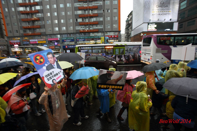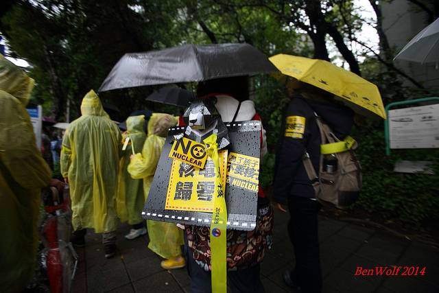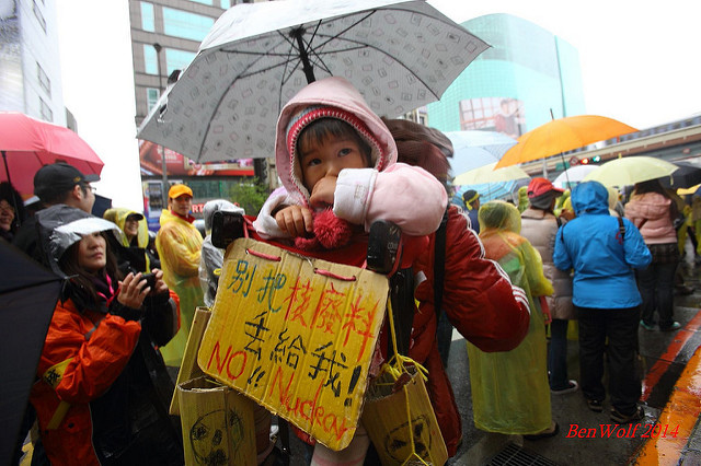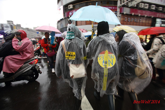 「別把核廢料丟給我!」可惜是下雨天。要是晴天的話,恐怕人會多更多吧。