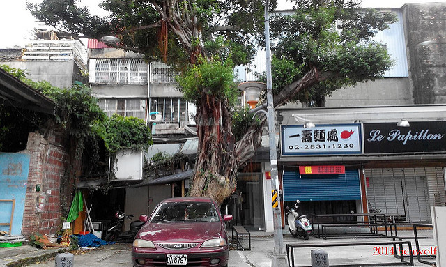 找了個靠窗的,看見窗外有棵大樹。不久,那男士用餐完畢離去,只剩三位婦人與我,索性拿下眼鏡,好好就著窗外的大樹,慢慢咀嚼進食。