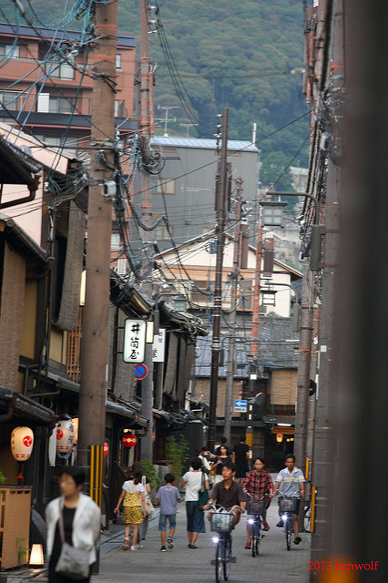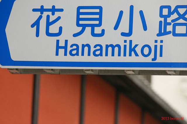 花見小路 Hanamikoji。據說是京都藝伎最常出沒的景點,