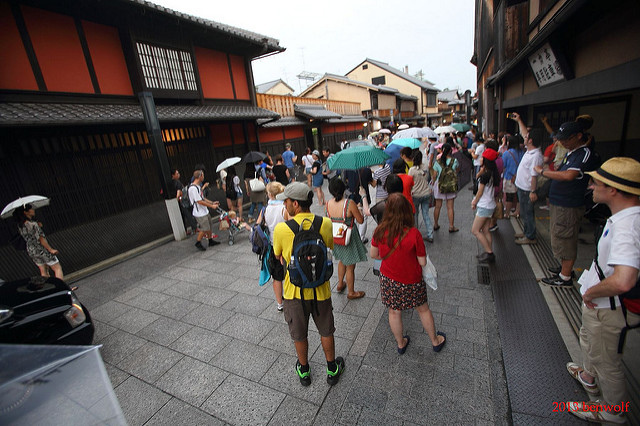 只要見到有藝伎在內的計程車,眾人(包括我在內)立刻圍上去,想要一睹真正藝伎的風情,當然,沒拍到的機會居多。