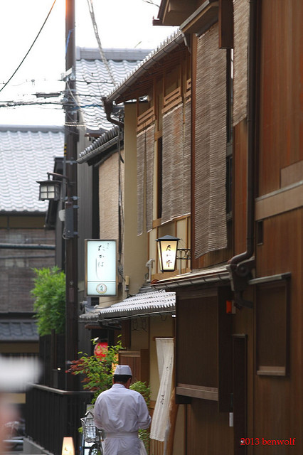(廚師趁著開始忙碌之前,出門透透氣)這裡有不少高級料亭,消費頗高,身為「觀」光客,還是到處逛逛拍拍照就好。