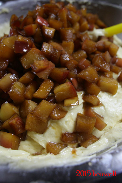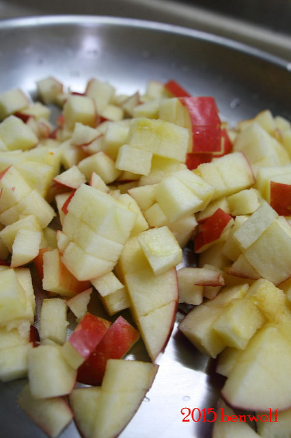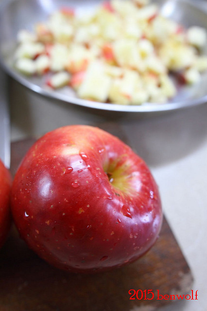 青蘋果磅蛋糕,不意外的,這次是看到紅通通的富士蘋果,塊頭更大、色澤更鮮。結果當機立斷,毫不猶豫的下手買進。