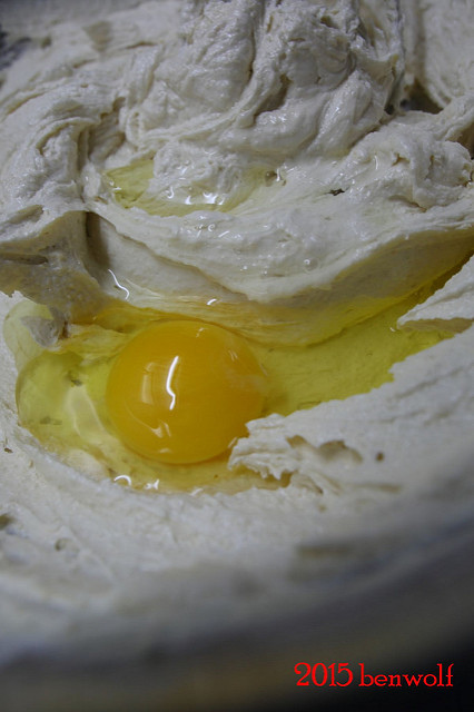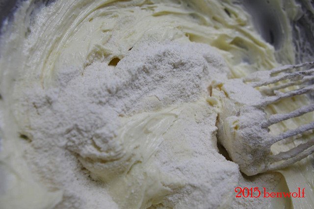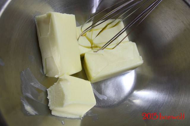 磅蛋糕麻煩的地方是,奶油得先在室溫放軟才行,不然很難工作。換句話說,至少得提早半天規劃才行。但是,如果真的急著要工作的話,還是可以採用微波爐加熱的方式,讓差不多三分之一的奶油軟化成液態,然後再按照正常程序打發。試過幾次,完全不加泡打粉的結果也算成功。