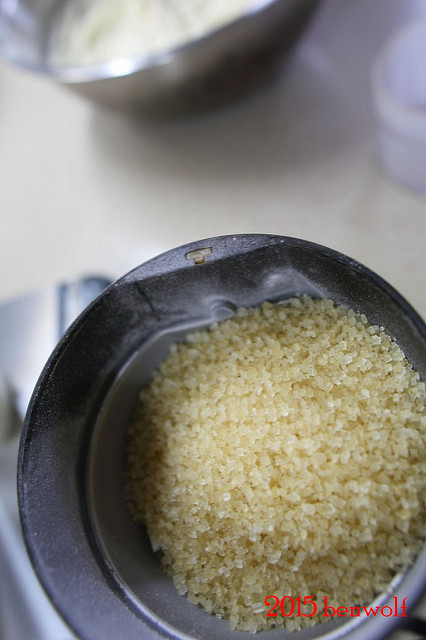 不~這是個偷懶的概念:二砂打成粉末,加快糖粉溶解的速度。是說人體攪拌機也有想偷懶的時候呀。囧