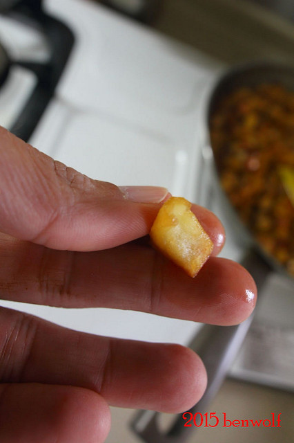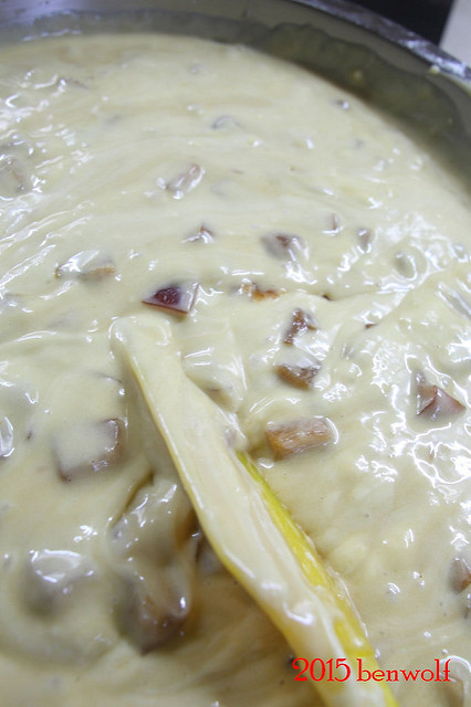 好忙,蘋果煮到這時也不知多久了,但可以看出汁液變得比較濃稠了。