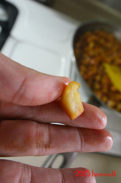 咬一口。嗯,裡外的顏色看來都一樣,快要好了。