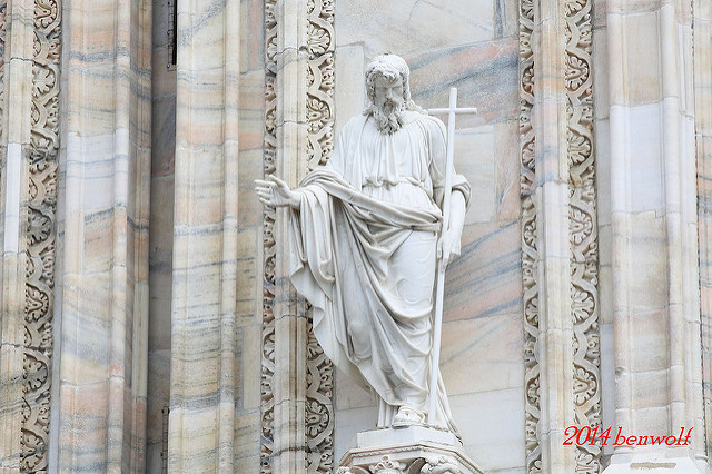 米蘭大教堂的雕像。幸好帶了200mm的望遠鏡頭,拍這種特寫容易許多。