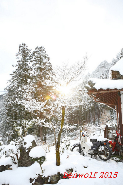 在這範圍不大的美山村走了好一陣子,總算找到投宿的龍門客棧,才讓我新買的皮鞋免於浸水之苦,也在主人的招呼下,換上長筒雨靴,即將這段的好自在雪中行…