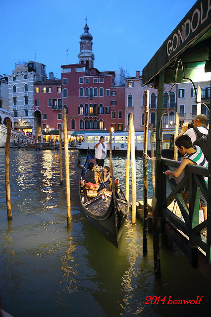 即將啟程的 gondola。在 Rialto 橋一旁的碼頭,人來人往,絲毫不因夜色而有稍減。