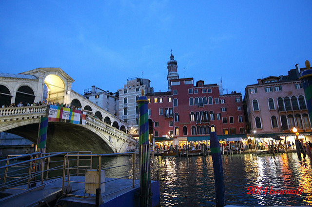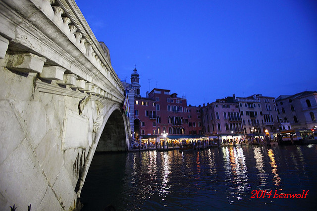 Rialto 一帶是威尼斯的經濟重心,商業活動非常繁盛,因而入夜後依舊熱鬧,毫不意外。
